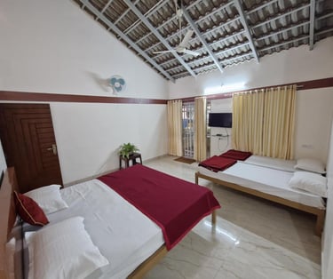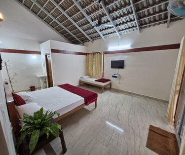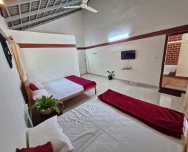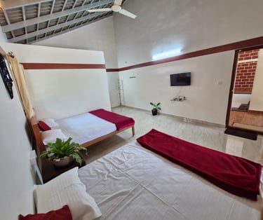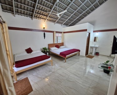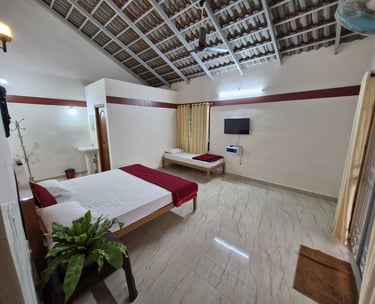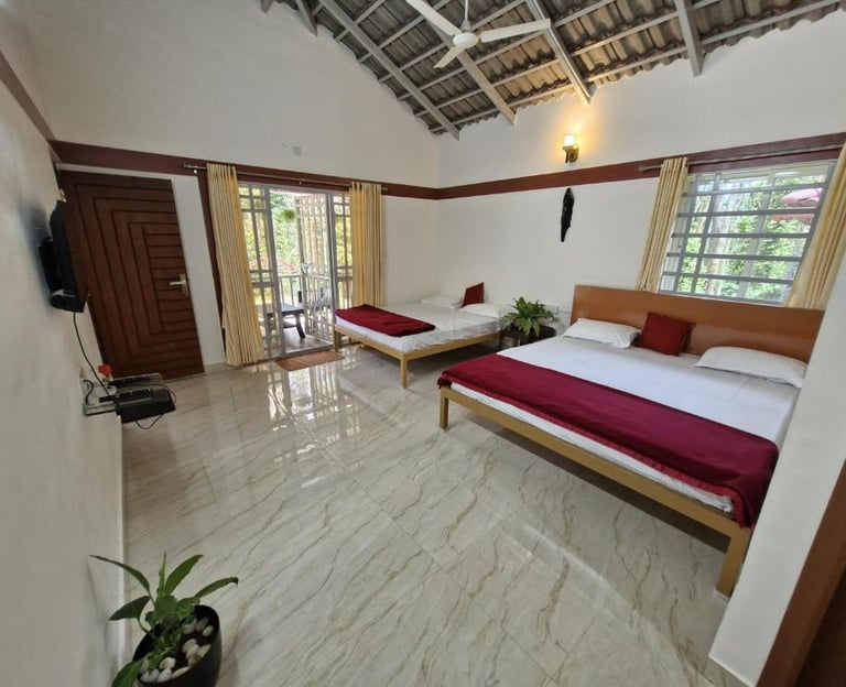 Enjoy a spacious rooms with comfortable beds, perfect for relaxation after a day of exploring Chikkamagaluru's beautiful coffee plantations and engaging in fun activities.